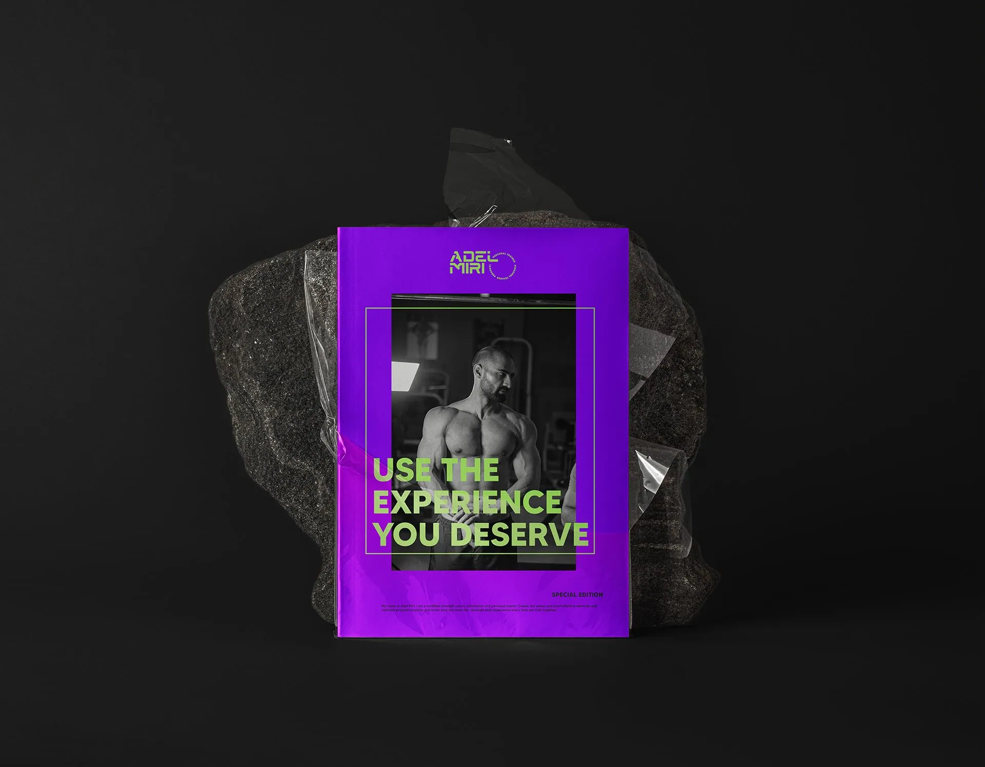 We used "Aeromono" pre created font and added a circle stamp representing Adel Miri's profession.